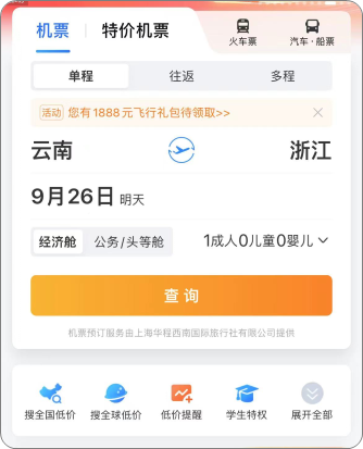 (目前只有携程可以按区域搜票)