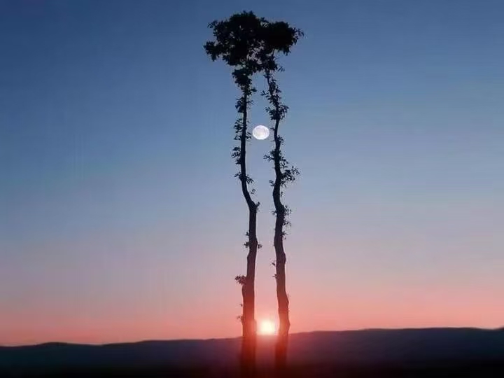 晚霞西坠月初升