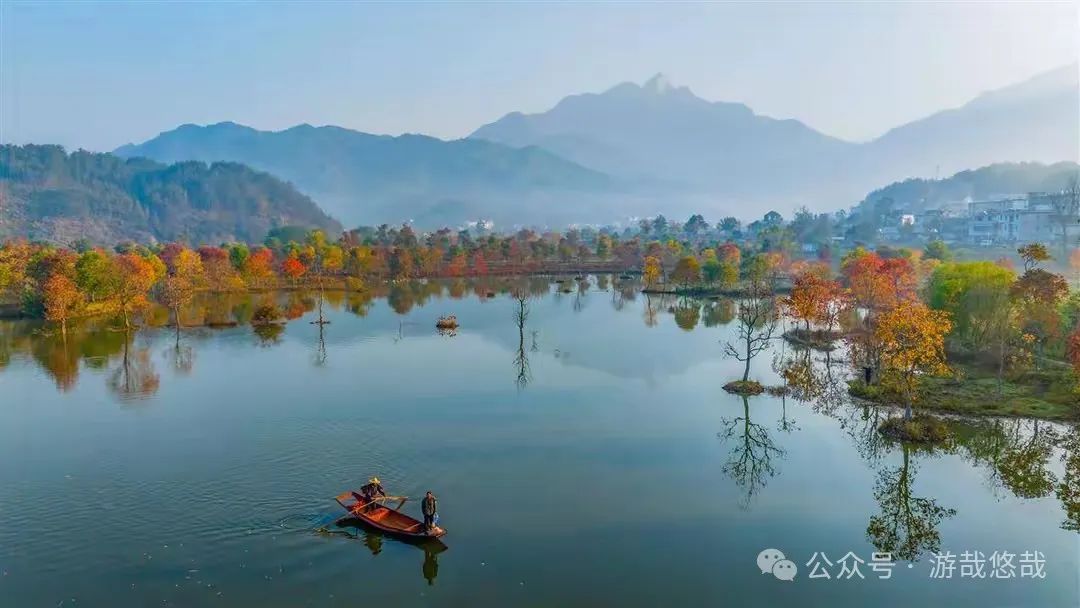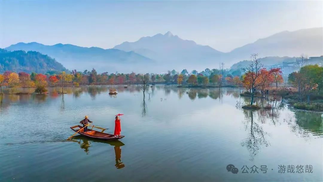 河西畈村是必打卡的地点,这里有全国独一无二的水上红叶,乘船穿梭于满是红叶的山水间,体验一次从未有过的赏秋之行。