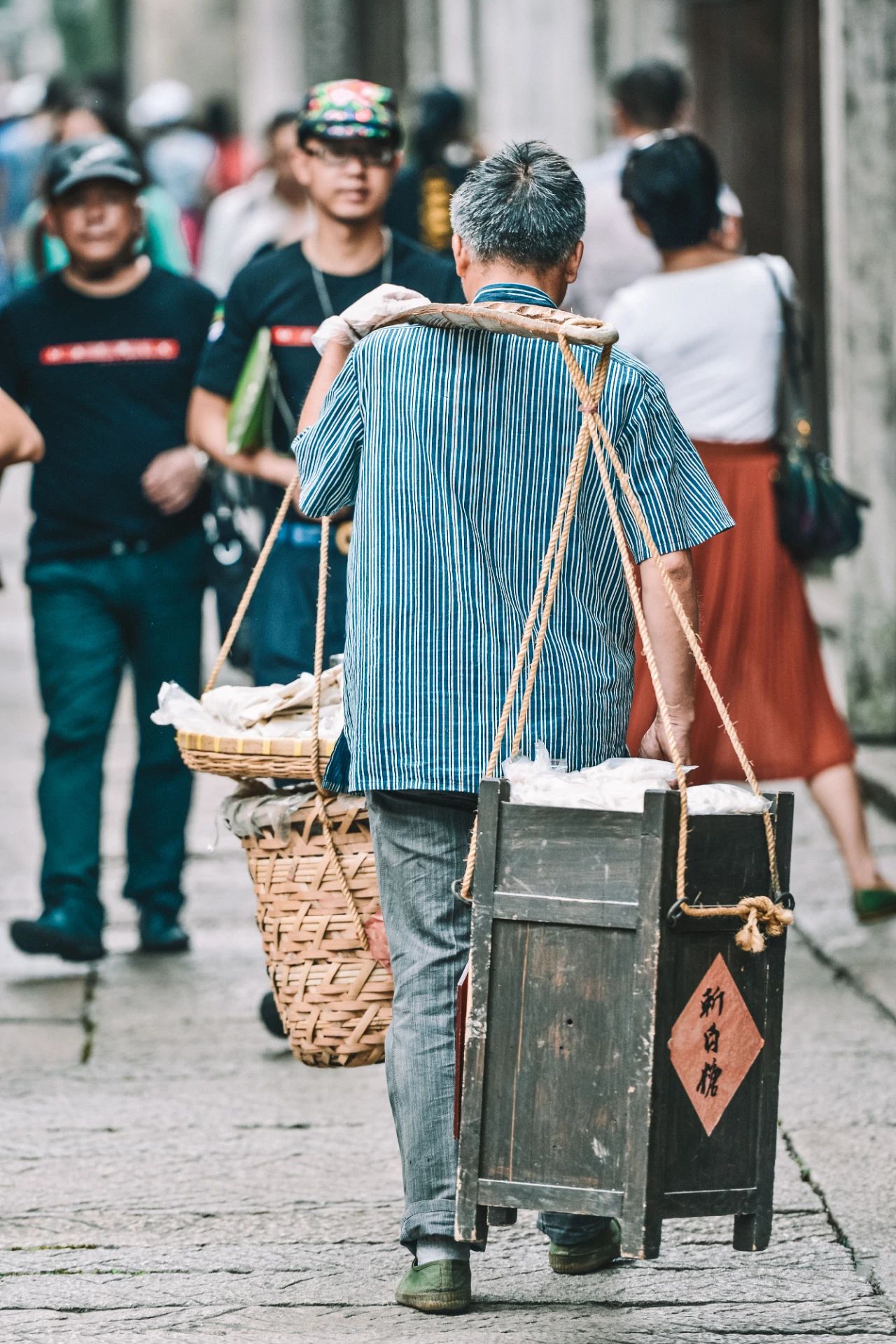 是的,“乌镇全员NPC(游戏里不受玩家操控、服务于剧情或者功能的角色)”,你在古镇看到的点点滴滴,都是一场场敬业的演出。但也别误会,这些“演员”中的许多人原本就是古镇的居民,“表演”的就是自己的生活,只是按照技能分门别类、按部就班地分配了更清晰的角色:卖菜的阿姨、炒菜的厨师、摇橹的船工、卖爆米花的大爷……每个人手里还有一张类似驾照的“年卡”,表演真实专业能加分,对游客不好会扣分。
