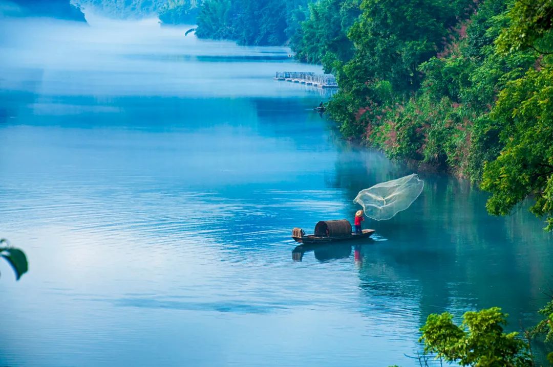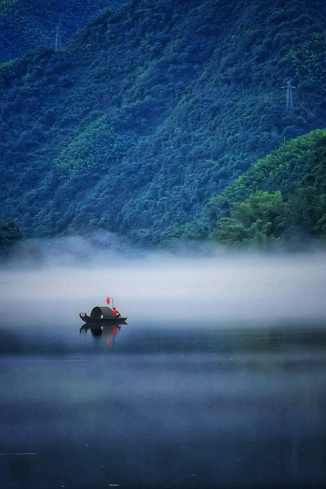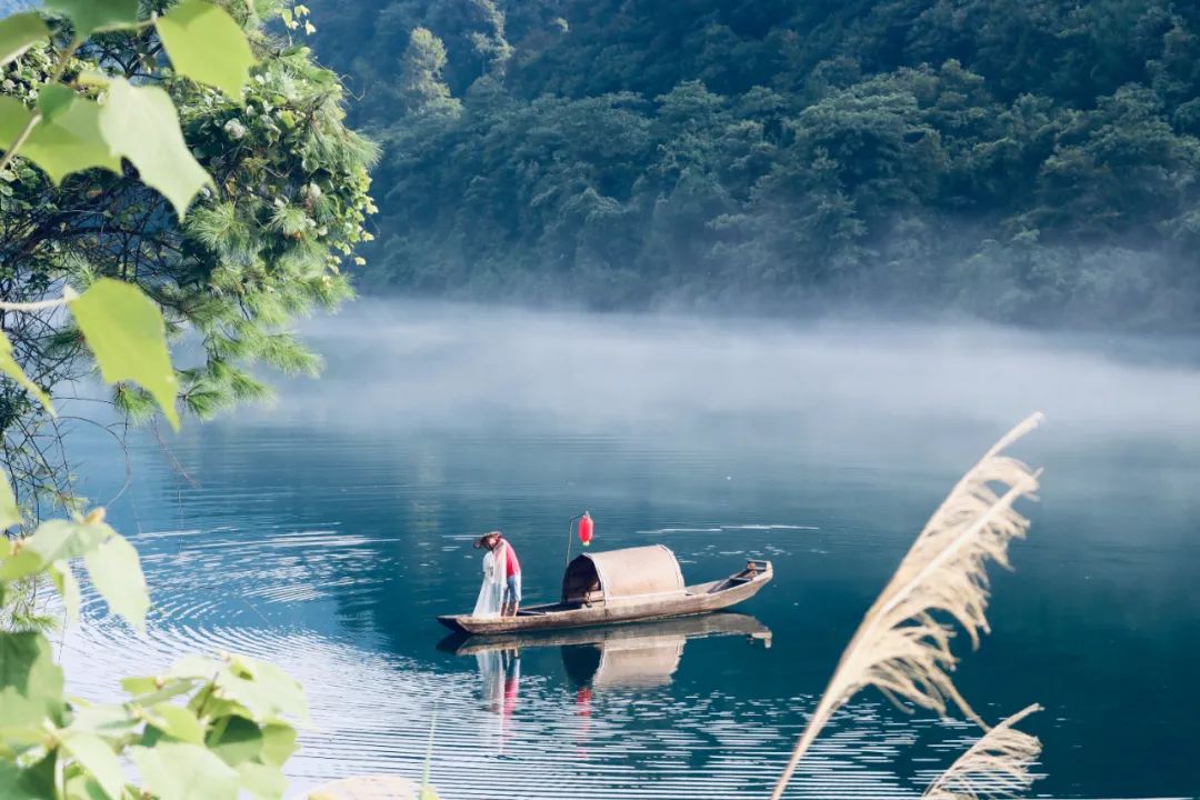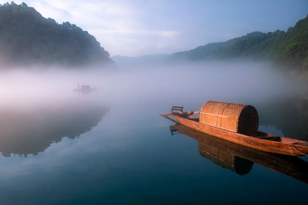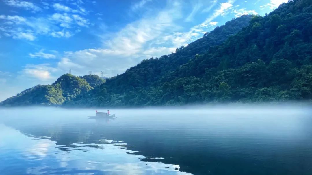 待到太阳东升,仙雾便会散尽,倒映着两岸景色如镜的江面更加宽阔清晰!