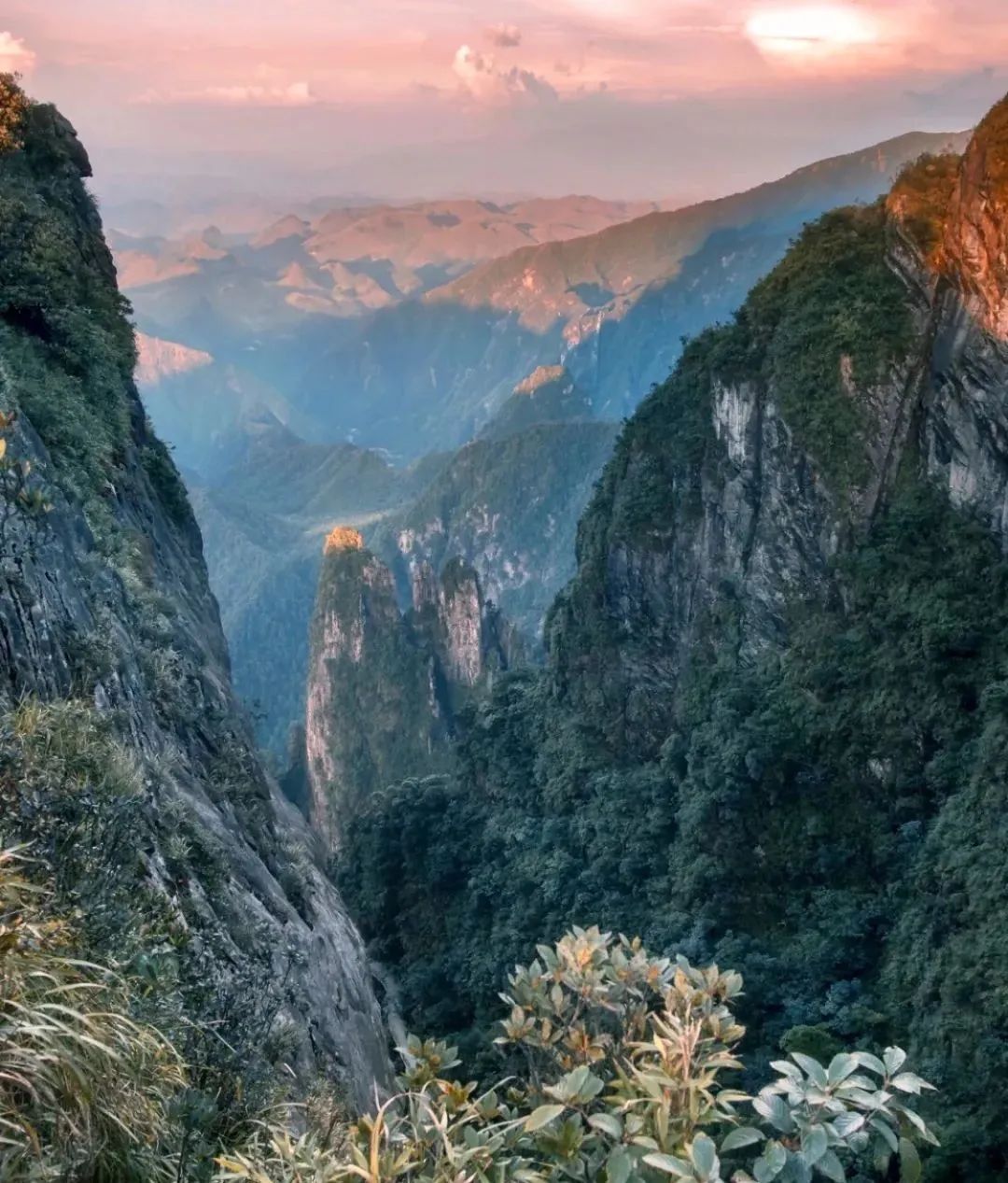 清晨雾气笼罩,傍晚彩霞满天,像是岛屿,像是峡谷。