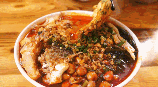 红红的汤,鲜鲜的鱼,滑滑的粉,香香的豆膏,酸酸的萝卜,最重要的是吃完以后大汗淋漓和意犹未尽的通透。