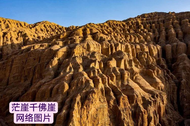 来之前做过攻略,茫崖市花土沟镇东北的游园沟,有一个千佛崖景区。它是一种典型的丹霞地貌和雅丹地貌相结合的特殊地质景观,由红色泥质悬垂构成。在亘古苍凉的崖壁上,泥塑崖刻在风雨侵蚀作用下,形成了层层叠叠、错落有致的佛像、菩萨和罗汉形象。尽管佛像已被风沙磨平了棱角而面目全非,但仍有“千佛齐聚”的壮观。