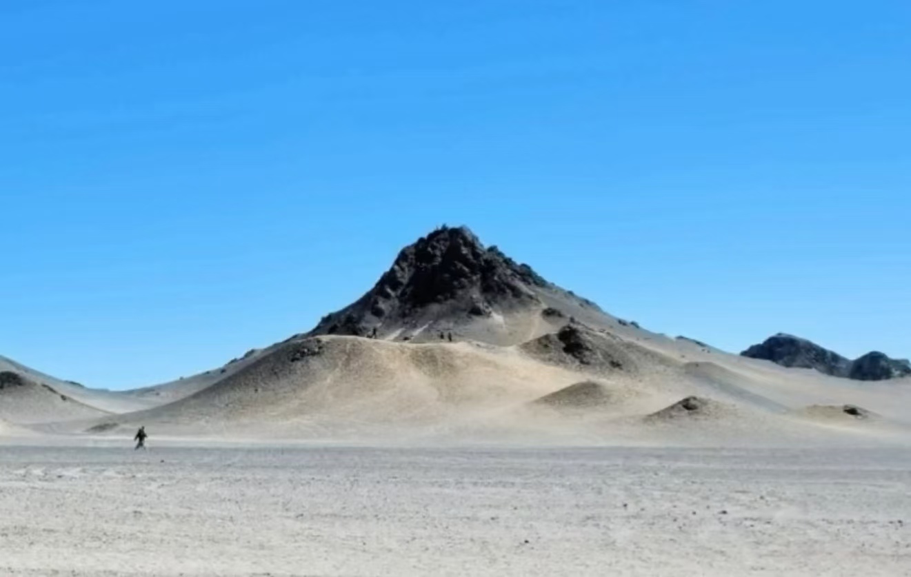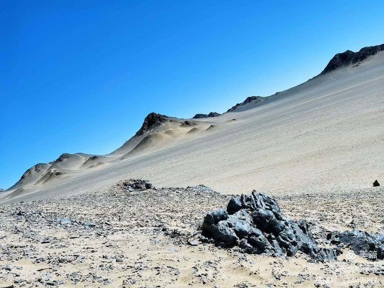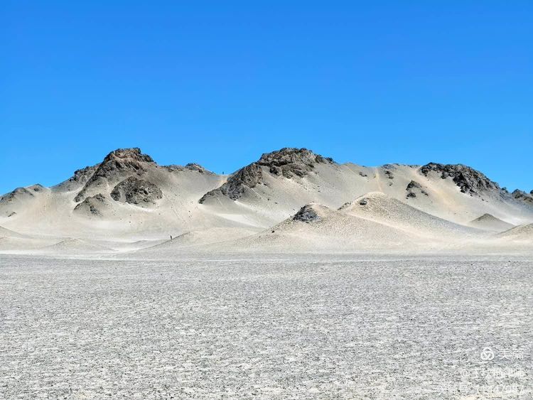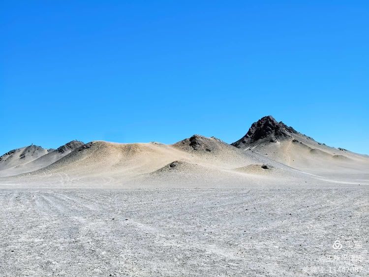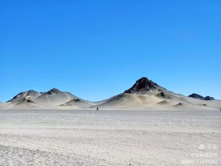 人们形容这里是最像月球的地方。我对月球知之甚少,不知道像不像。只是远望过去,灰黑色的山体矗立在土黄色的砂砾中,给人一种荒凉、孤寂的感觉,颇有李延年诗中“遗世而独立”的冷艳美人的韵味;又像是大自然挥毫泼墨成就的用色极简的巨幅山水画。如果傍晚日落后静静地欣赏,应该更漂亮吧?