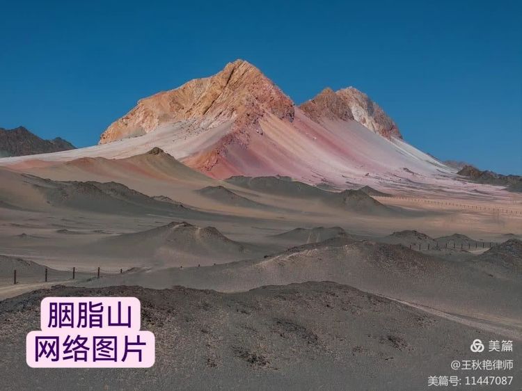 其实,来之前做攻略,知道冷湖镇去黑独山的路上,还有一处绝美的胭脂山。网上随处可见胭脂山的照片、视频和资料。我找到的是人民网2024年4月19日刊登的一篇文章,即《戈壁荒山“略施粉黛”现“七彩流沙”景观》,其内容如下: