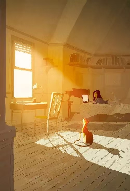冬天的太阳这么美好,阳光下的一切都那么金灿灿的、暖烘烘的,更懒洋洋的。我终于卸下了尘土般的疲惫,让自己也变得懒洋洋的。和这水涟一起发呆,发笑。