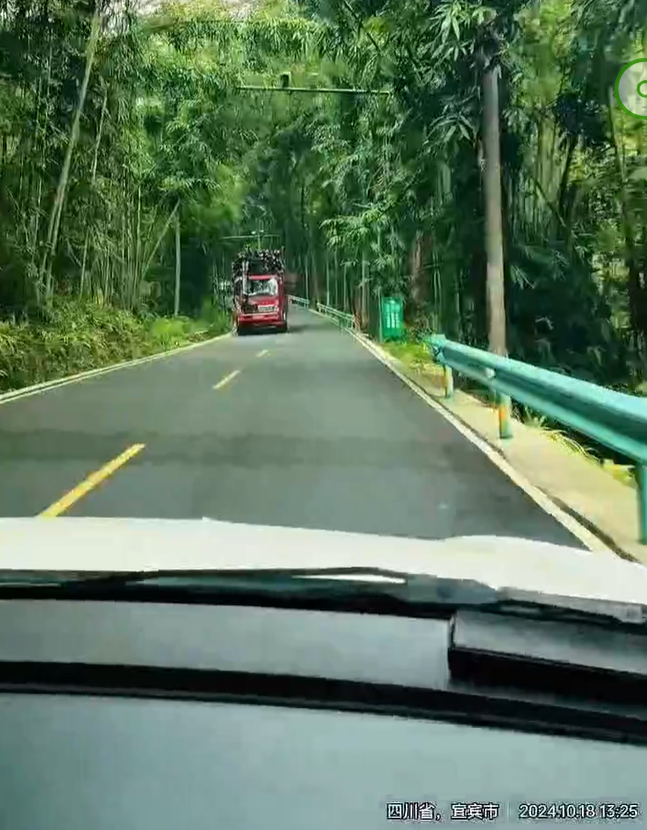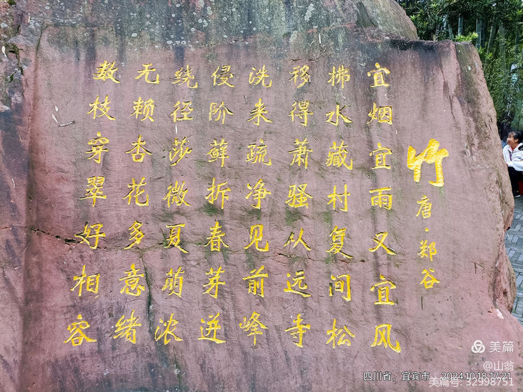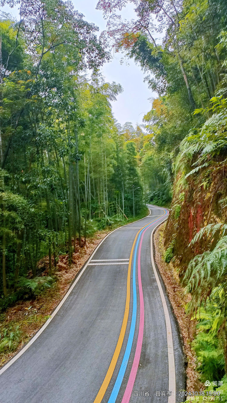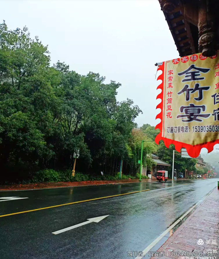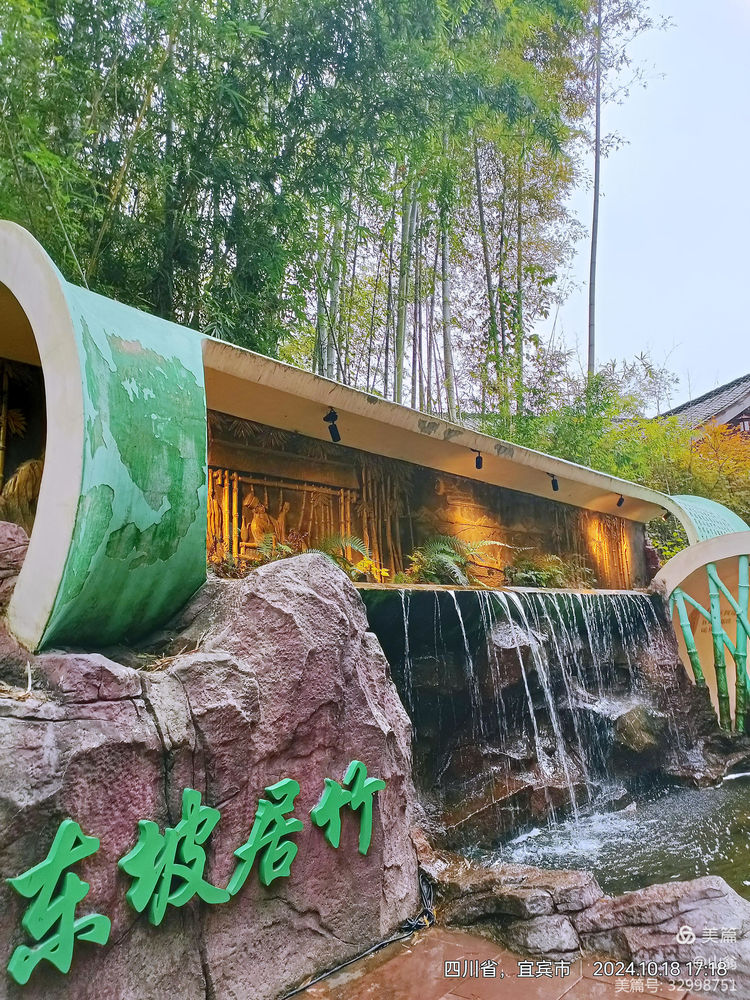 围绕着它,景区的开发者也做足了文章。比如这两块石刻,这座亭台,这座关于苏东坡的竹塑,都让人流连忘返。但时间已不早了,我们得结束今天这半天愉悦身心的旅行,回旅馆吃一顿竹饭了。看看这一段来时的翡翠之路有多美吧。