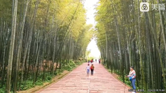 之后,我们来到“翡翠长廊”。据介绍,翡翠长廊是竹海最具特色的标志性景观,长廊的路面是由“色如渥丹、灿若明霞”的天然红砂石铺就,两旁的秀美的翠竹就像无数天仙,微弓着她们的身躯,文静地迎接着四方来客。故称这里为翡翠长廊。走在这长廊里,自由自在地呼吸着无染的空气,我不由地有些兴奋,欣然在一旁摊点上买下一只做工精美的竹茶筒。不停地拍下录下一段段秀竹仙女般的身姿。