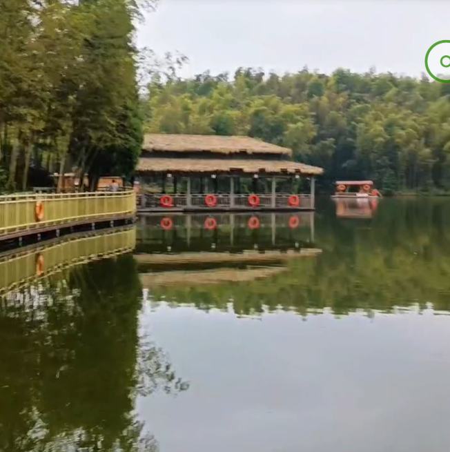 走上蜿蜒不知远近的栈道,除了栈道,入眼的是无边的竹林,天然的湖泊;入耳的幽幽的丝竹,喳喳的鸟啼。心旷神怡不由处主。偶间还可以看到大头茶树,採下茶叶一片。