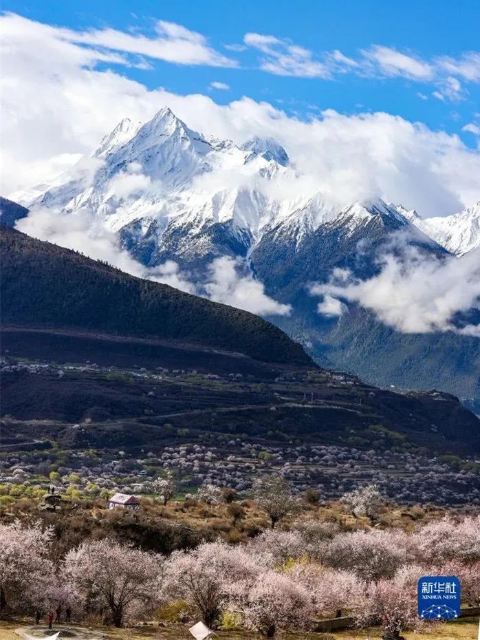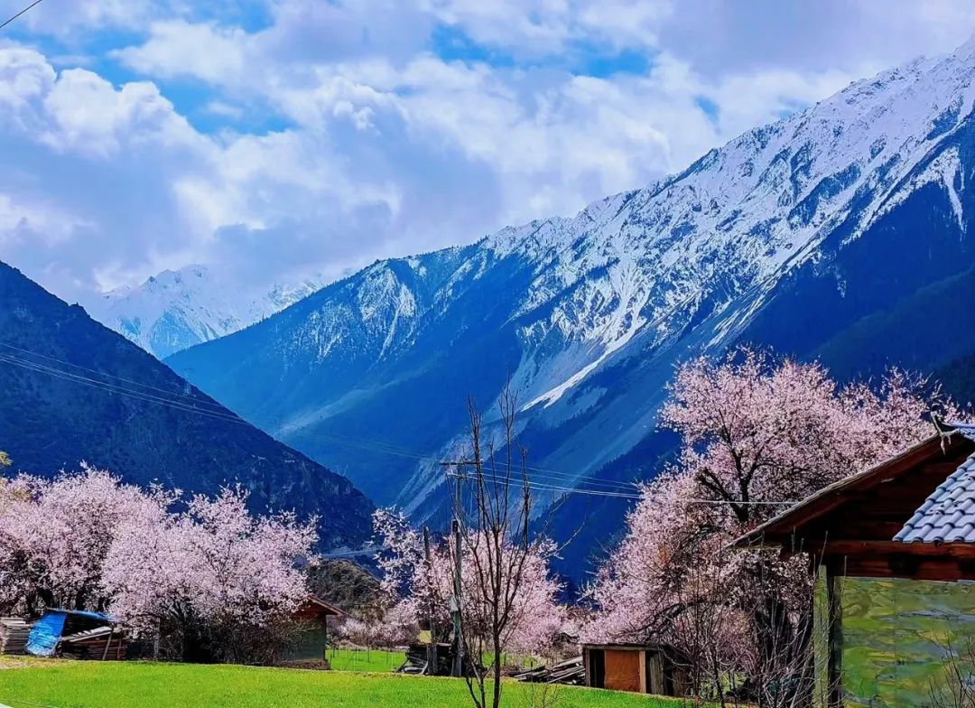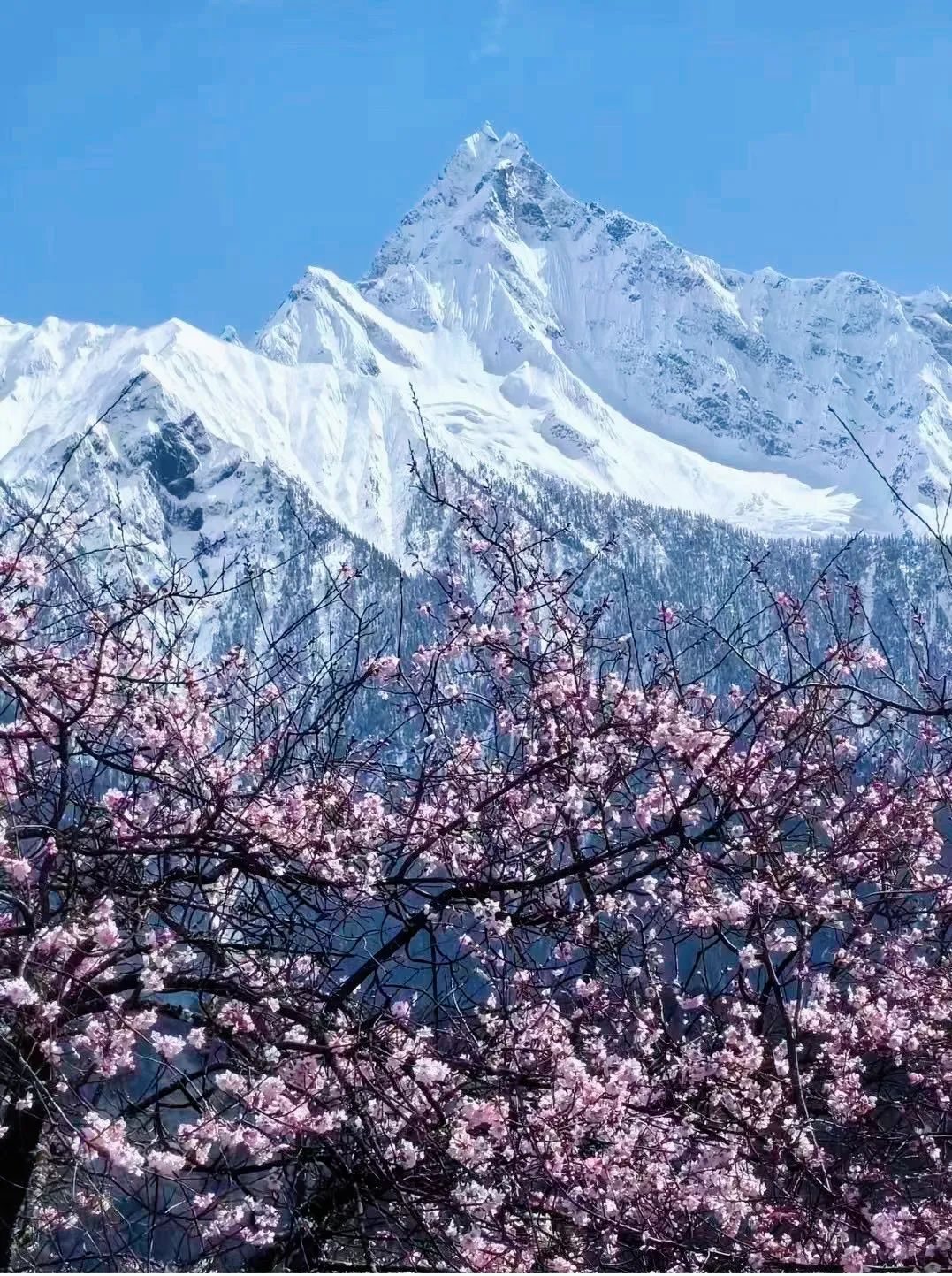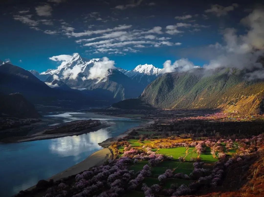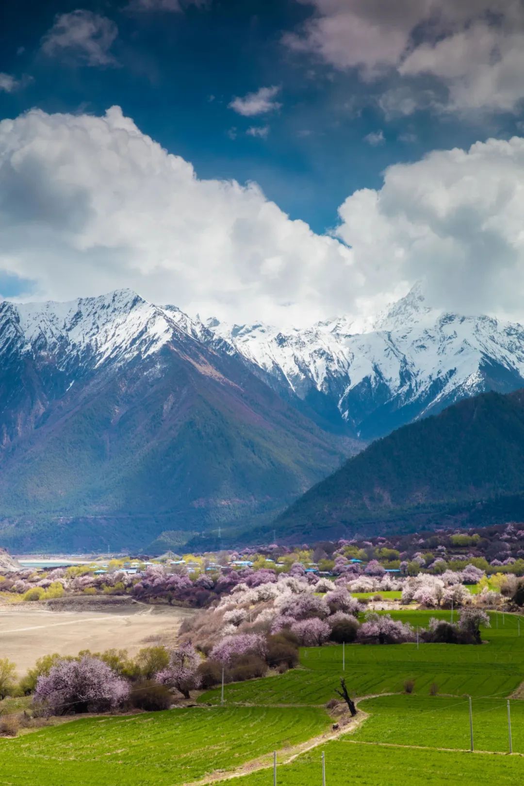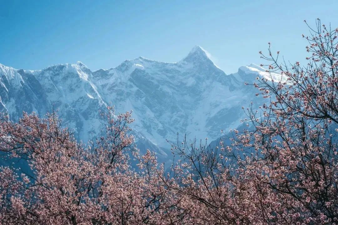 直面南迦巴瓦,坐拥观赏中国最美山峰的绝佳视角。桃花与雪山的组合,让无数风光摄影师为此痴迷。