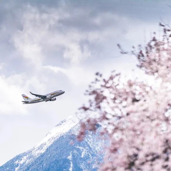 如果是直接飞到林芝,可以在离开机场穿过岗嘎大桥时,找个地方停下车,从这里回望机场,运气好的话,可以捕捉到飞机在雪山与桃花簇拥下划过天际的景象,这种景致在林芝可是独一份,只有这里才拍得到。