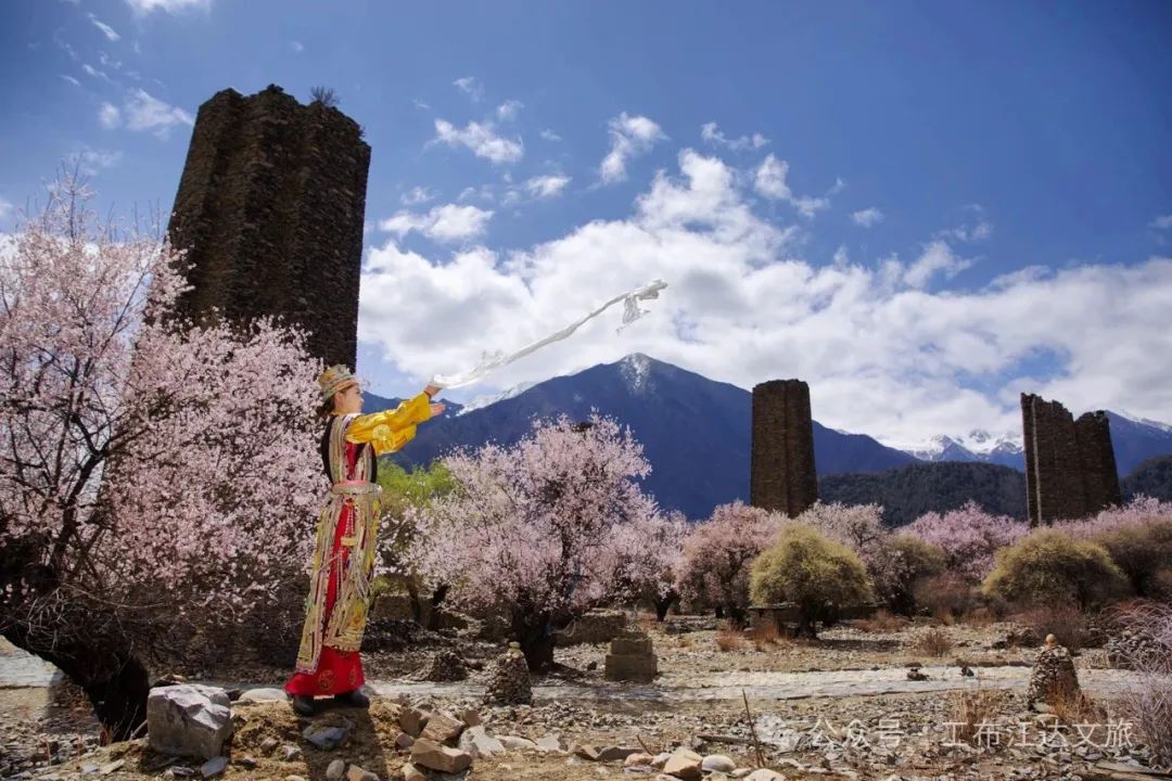 就在318国道旁,被誉为“中国景观大道上的最美乡村”,同样有壮丽的雪山、绚丽的桃花以及广袤的青稞美景。这里还有隐藏秘境——嘎朗湖,湖畔保留有嘎朗王朝遗址,是拍摄桃花倒影的好地点。