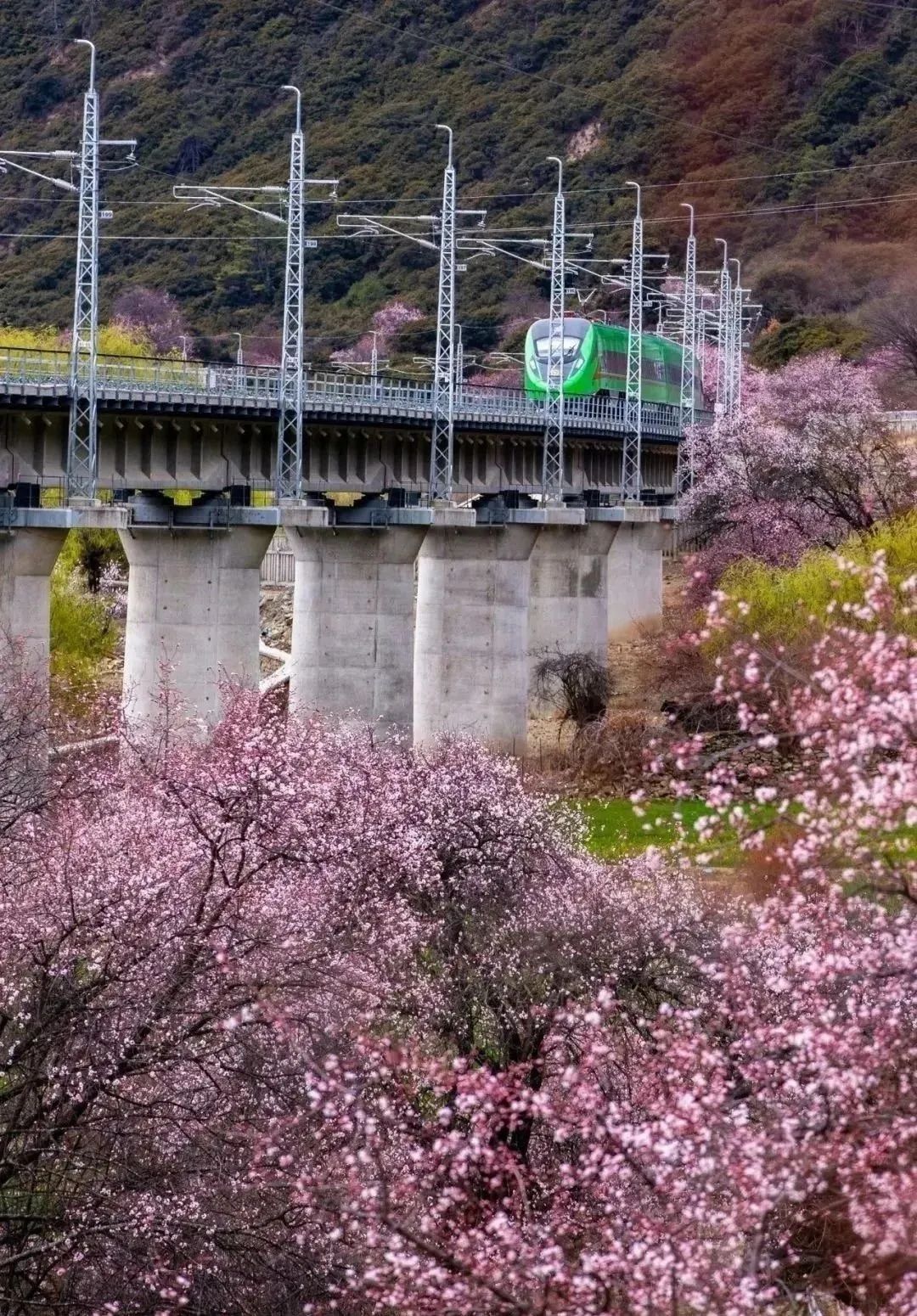 如果是从拉萨出发,可以搭乘火车前往林芝。3月中旬到4月初这段时间,行驶在朗县到林芝段,特别是米林附近,透过车窗可以看到雅鲁藏布江两岸壮观的桃花林。