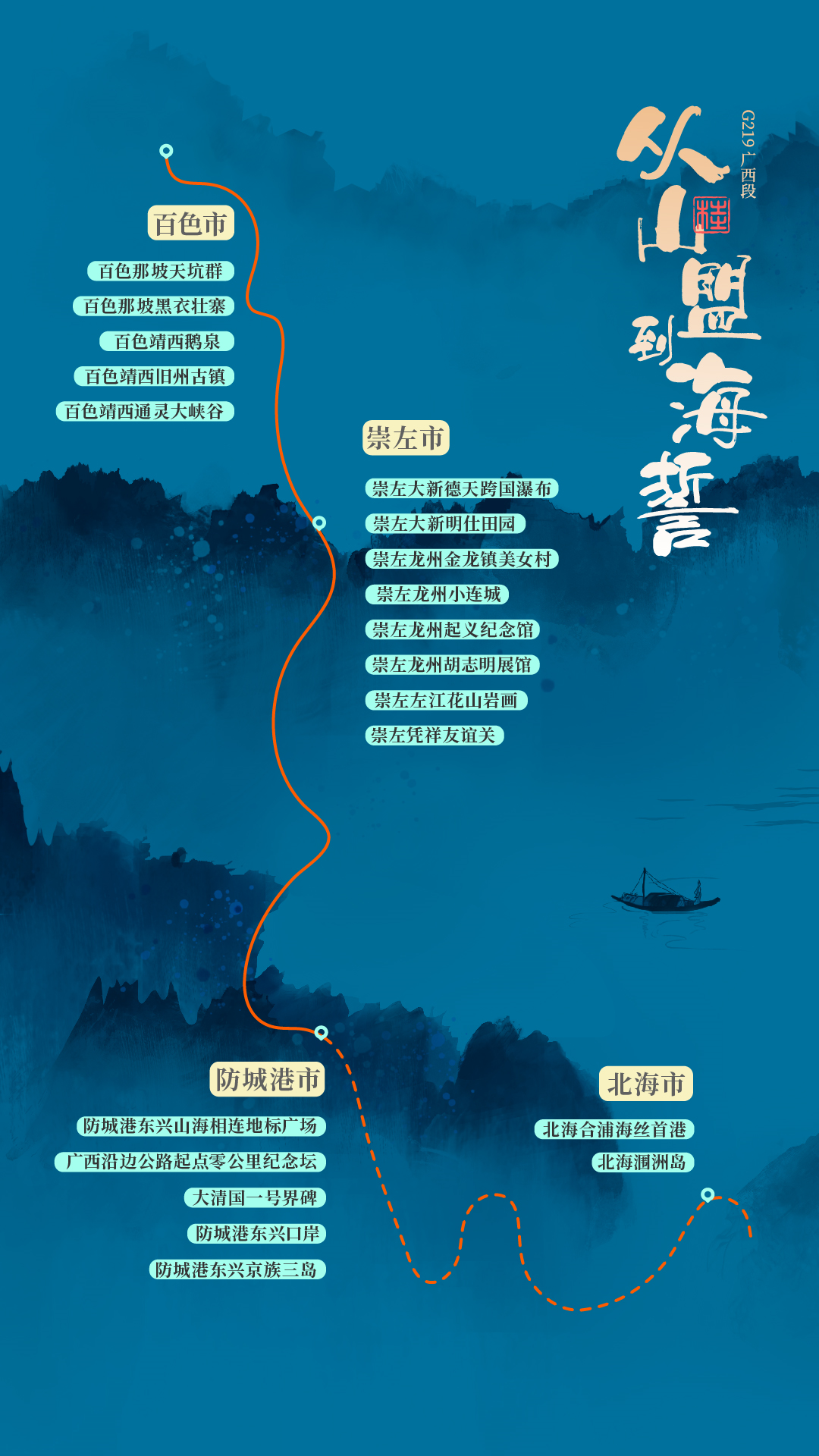 (219国道广西段路线 图@广西文化和旅游厅)▼