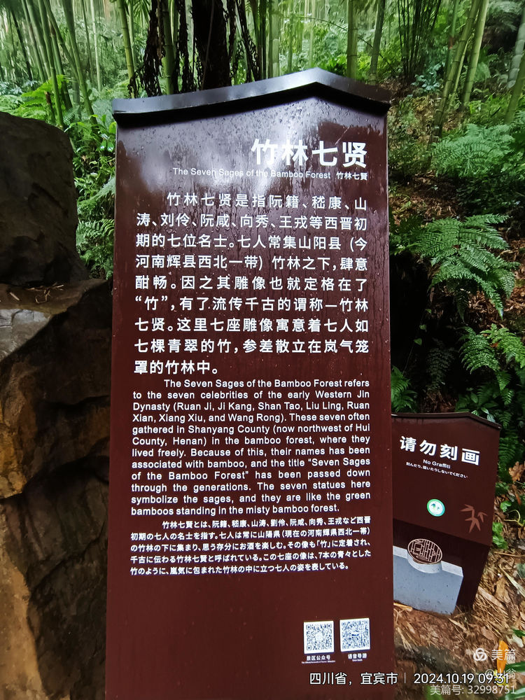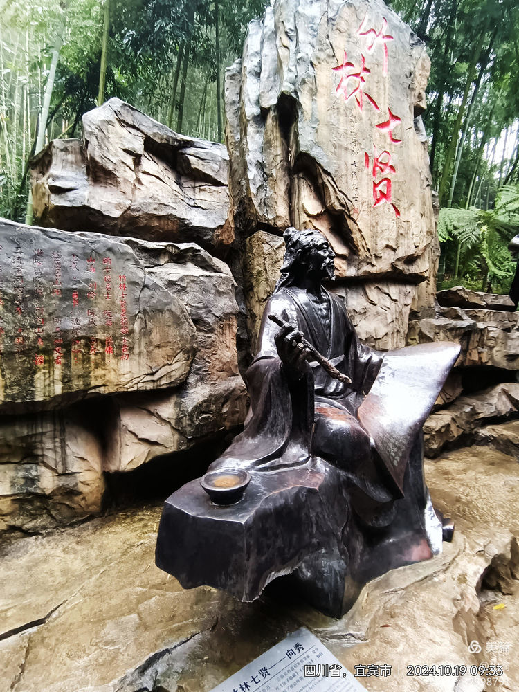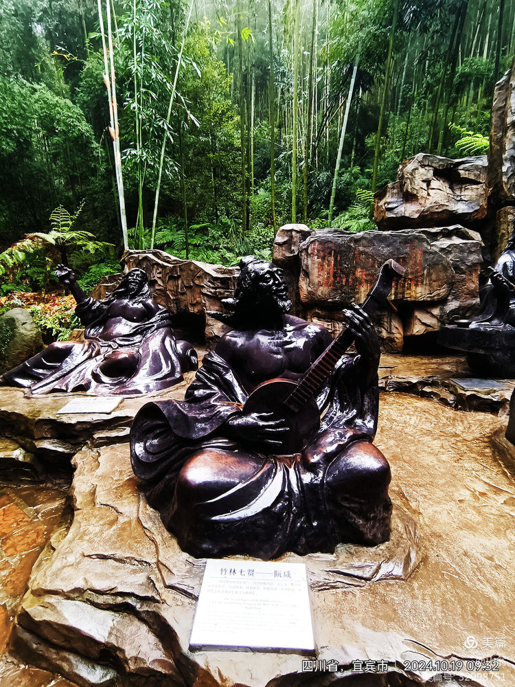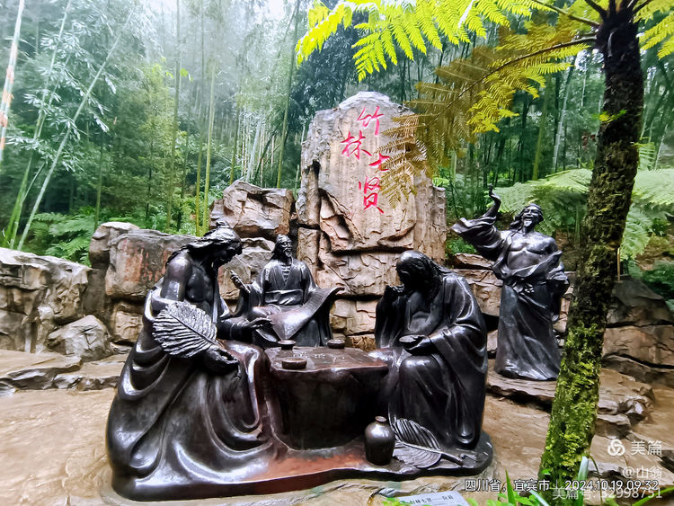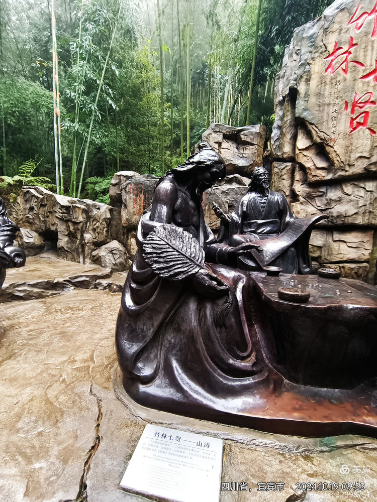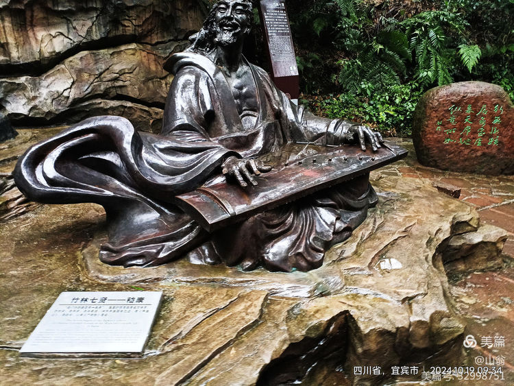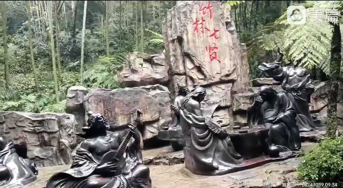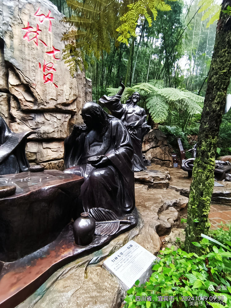 “拜会”一下他们这些贤人去!我加快步子往下走去。下走的路上,我方发现有一导向牌上有“竹林七贤”的指向箭头,上山中,我只顾了看茂林修竹,湍湍流水,竟然走过头了。
