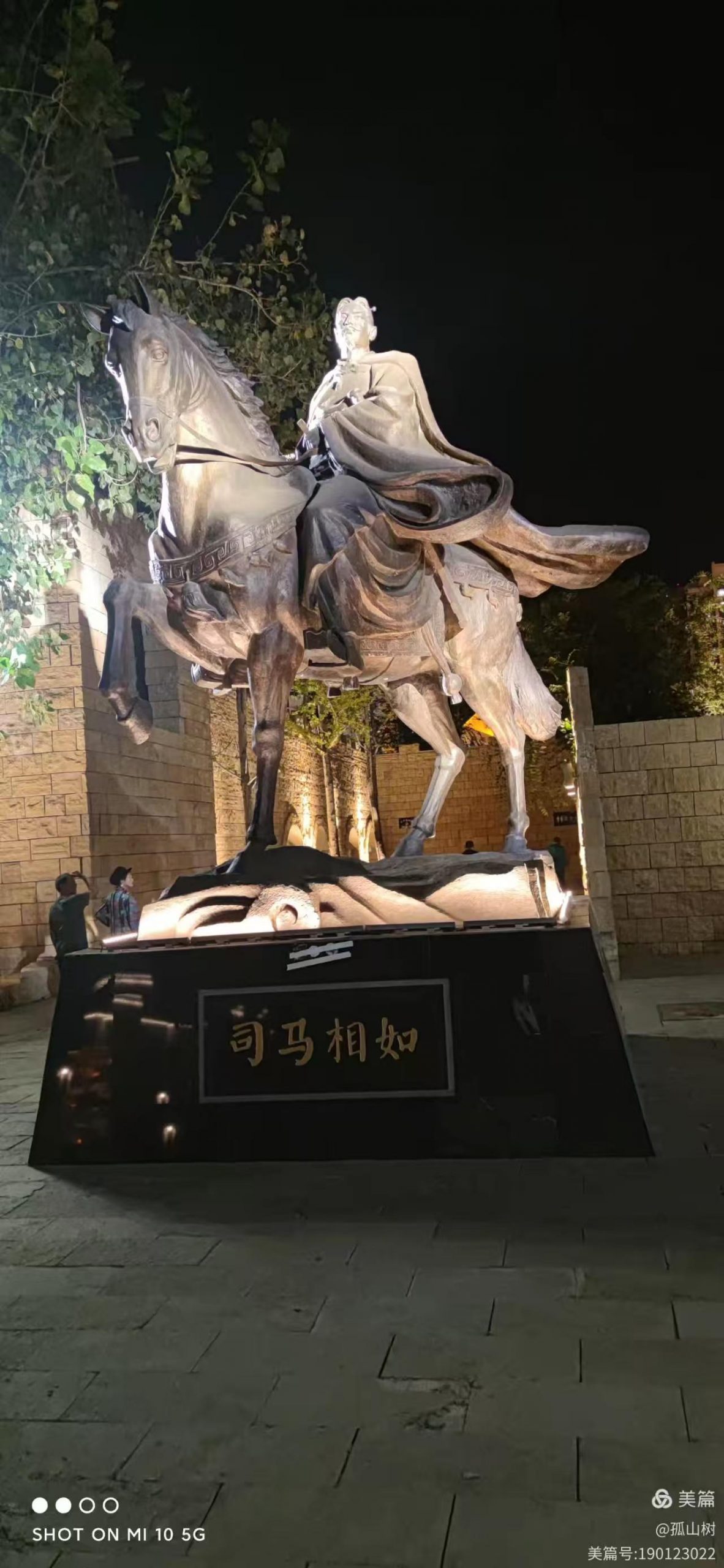 汉代大文豪司马相如跃马塑像,也不知司马相如与此地有何因缘?司马相如与卓文君的爱情故事,主要体现出卓文君识人智慧和勇于担当的魄力。“相如做赋得黄金,丈夫好新多异心,一朝将骋莫陵女,文君因赠白头吟”。多才多艺的卓文君,用回头诗打动了司马相如,挽救了这段几生变故的婚姻。