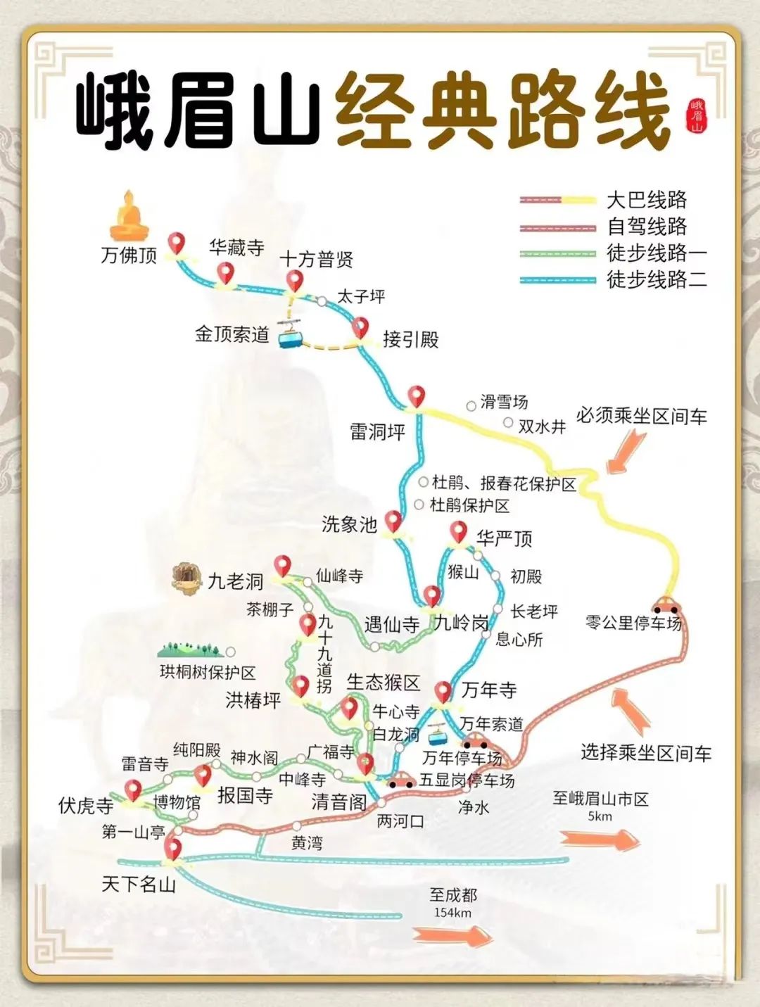 峨眉山,位于四川省乐山市境内,中国四大佛教名山之一,以独特自然景观和深厚佛教文化闻名。它不仅是宗教圣地,更是自然奇观。秀美壮观的自然风光,具有“雄、秀、奇、险、幽”的特色,奇峰怪石、飞瀑流泉,一山含四季,十里不同天,被誉为“天下第一山水禅林”。