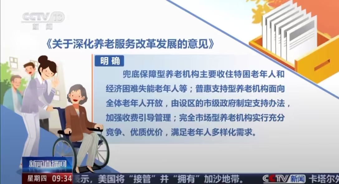 北京某养老机构负责人 李欣:我们初期在做这种机构养老的时候,更多的是带着一个探索的心态,随着《意见》的落地,这个分类更加清晰了,我们感觉到政府给高品质的养老机构留下了更大发展的政策空间,也让我们更加坚定了发展的信心,同时这样我们也就敢更多地做投入了。