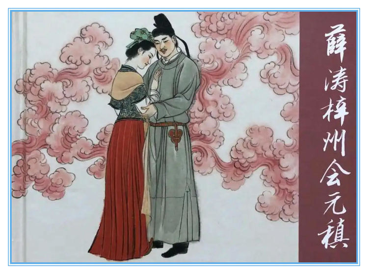 从而由一名官妓被贬为了营妓,一个如花似玉的姑娘被发配到了前线,又会有怎样的遭遇呢?薛涛不敢想象,她无论如何也要想办法回主人处才好。能够救他的人,只能是惩罚他的人。于是,薛涛就写下了著名的系列诗篇《十离诗》,一共10首。其中最著名的的一首叫《犬离主》:“驯扰朱门四五年,茅香竹进主人怜,无端咬着亲情客,不得红丝毯上眠。”他把自己比喻成狗,而韦高就是她的主人。大概的意思就是,我本是你悉心驯养的忠诚之犬,追随你已经有四五载春秋。我毛发光泽,行为得体,从来没有随意的玷污一地,从而赢得了你无尽的怜爱,然而因为我一时冲动,无端的咬伤了您的贵客,您盛怒之下将我逐出了家门,我就再也无法依偎在你温暖的怀抱。他以一个宠物的口吻来倾诉心声,满心酸楚,后悔之情溢于言表。要不说这个薛涛是真正拿得起放得下的人,相比于发配前线做军妓,向主人求饶又算得了什么呢?后来看到这首诗,念及旧情,就又把薛涛调回了成都。在经过一番岁月的洗礼,二十岁的薛涛似成熟了许多,不想再依附任何人,她要想有属于自己的一片天地。在薛涛的坚持之下,韦皋帮她脱离了乐籍,遂为自由神。但韦皋仍要求她,他在公务活动中需要她陪同接待时候,她也要随叫随到,于是她过起了半隐居相对自由的生活。然而直到一个男人的出现,又彻底的打破了她宁静的生活,这个人就是写下“曾经沧海难为水,除却巫山不是云。取次花丛懒回顾,半缘修道半缘君”的风流才子元稹。公元809年,30岁的元稹以监察御史的身份出仕川东,便趁机向41岁的粉黛佳人薛涛展开了攻势,而此时的薛涛虽然说芳华已过,但是风韵犹存,对于元稹那也是情有独钟。有人说恋爱中的女人智商会降低,她明明知道元稹是有妇之夫,而且两个人的地位也悬殊,年龄也有差距,而且还是姐弟恋加上婚外恋,显然是没有好结果的,但是她不管不顾,飞蛾扑火般与元稹双宿双飞,尽享欢乐。在此期间,她还写下了缠绵悱恻的色的《池上双鸟》“双栖绿池上,朝暮共飞还。更忆将雏日,同心莲叶间。”然而,美好总是那么短暂,这一份姐弟恋仅仅持续了三个月,元稹就因被调离而分别了。
