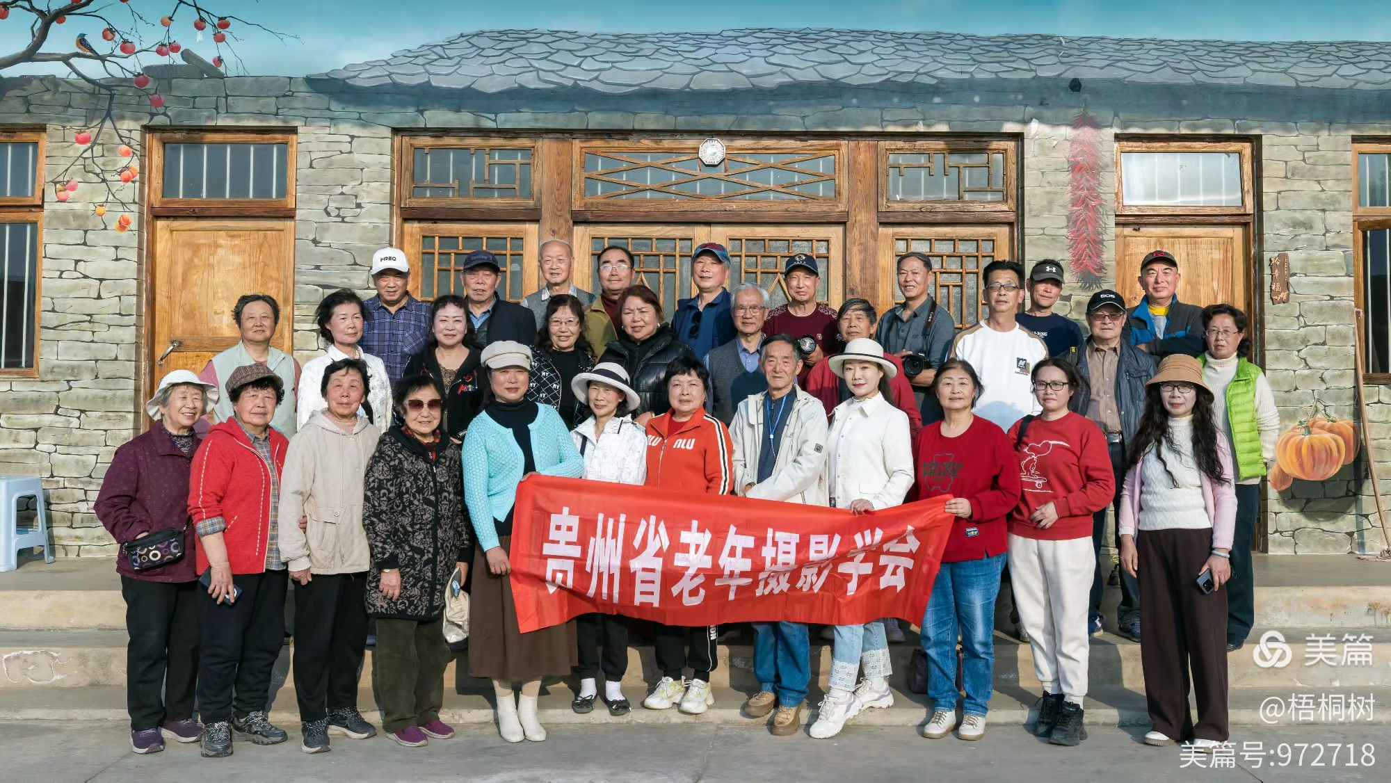 四月的贵阳,春风拂面,万物复苏。贵州省老年摄影学会组织了一场主题为拍摄桃花的采风活动。永乐乡山清水秀,桃花盛开,处处洋溢着春天的气息。我们一行人在永乐乡度过了一个难忘的春日。在永乐乡“黔丰收”摄影基地的石屋前,摄影团队整齐地站成一排,他们带着对自然的热爱和对摄影的执着,开启了这次美好的旅程。
