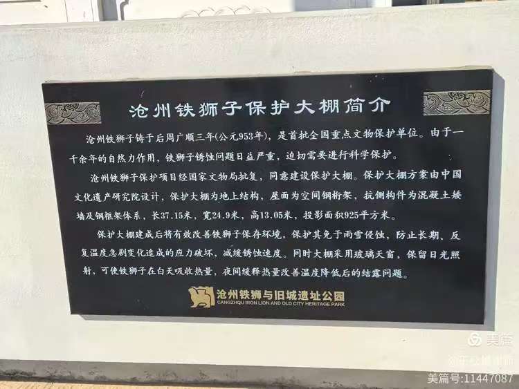 现在的铁狮子上面又搭起了一个保护大棚,只是影响了对铁狮子的观赏,也影响了拍照效果。
