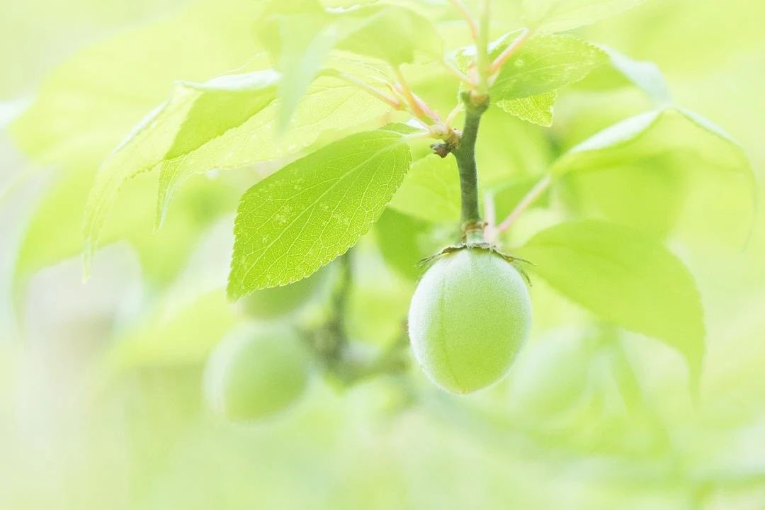 青梅味酸而脆,可与蜜糖相拌食用。也可一颗颗摘下来,泡在酒中,待到仲夏之夜,悄然开启,一壶对酌,最忆当年情窦初开时。