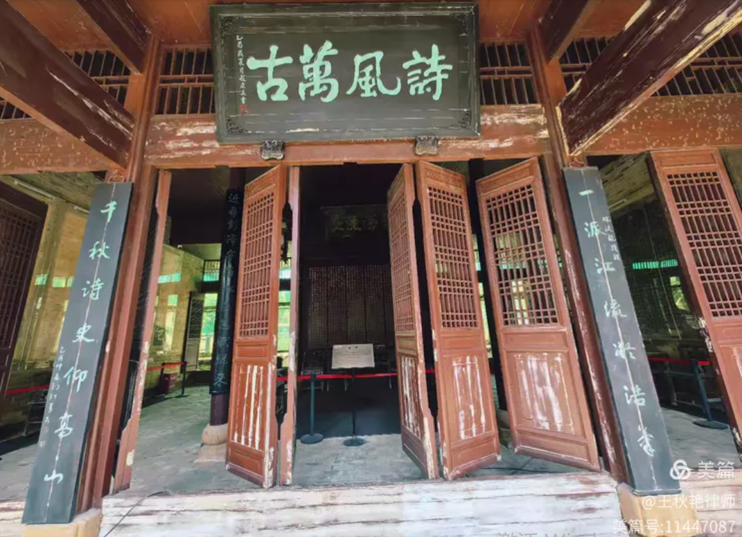 下联意思是说,左徒屈原和诗圣杜甫,都在这里走向生命的终点,一条汨罗江,永远承载着两位诗坛巨擘,他们的风骨和家国天下的情怀将和他们的史诗巨著一样熠熠生辉、传承万世,滋养着汨罗这片土地,滋养着这片土地上的人民。