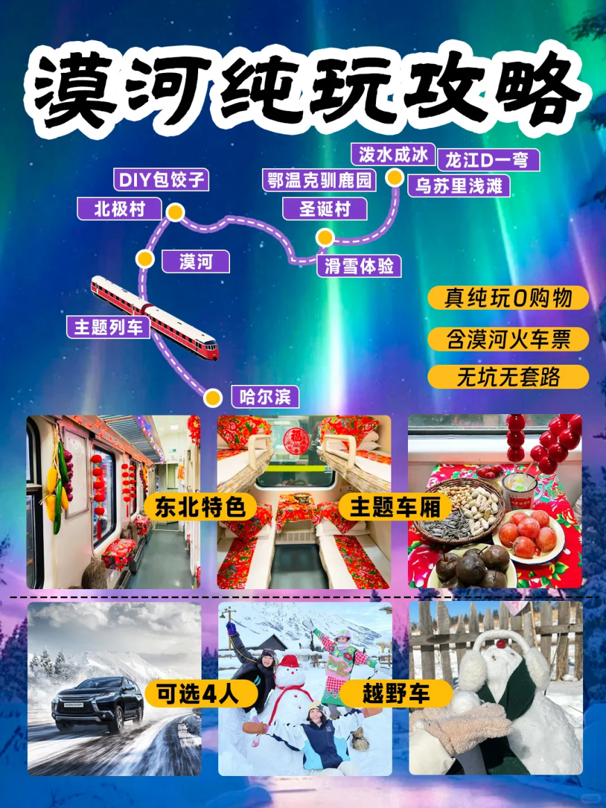 ▸交通:乘”雪国列车”K7041从哈尔滨出发(19小时)