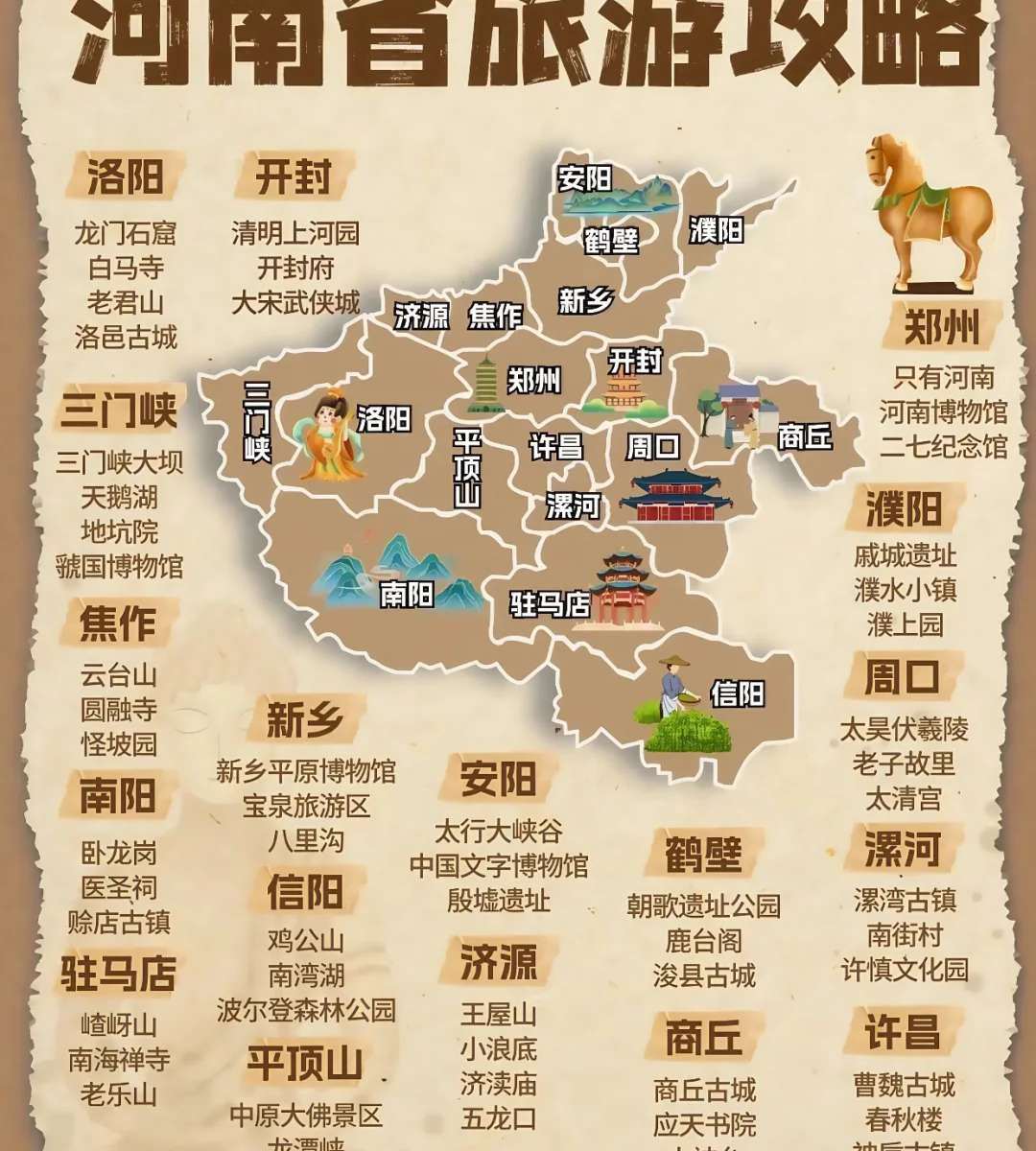 ✅精华景点:龙门石窟、少林寺、清明上河园、云台山、白马寺、开封府、郑州黄河风景名胜区、安阳殷墟、焦作云台山、新乡八里沟。