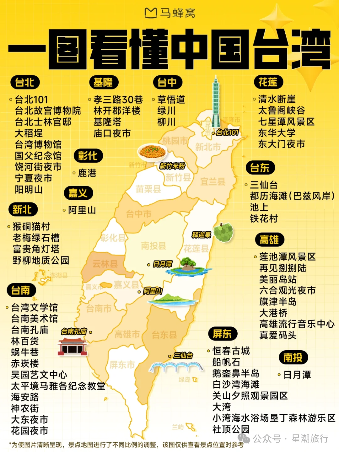 ✅精华景点:日月潭、阿里山、台北故宫博物院、垦丁国家公园、太鲁阁国家公园、阳明山国家公园、九份老街、高雄爱河、花莲七星潭、台中大坑风景区。