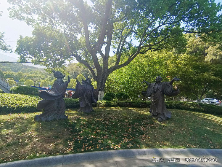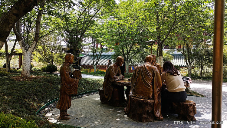 (图片:东林寺虎溪桥头“虎溪三笑”佛塑)
