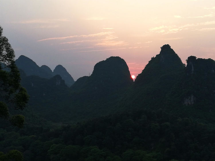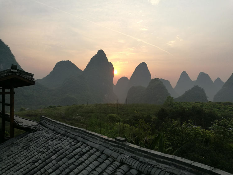 (图片:2017年4月14日笔者在阳朔一家山庄楼顶拍得的日落)