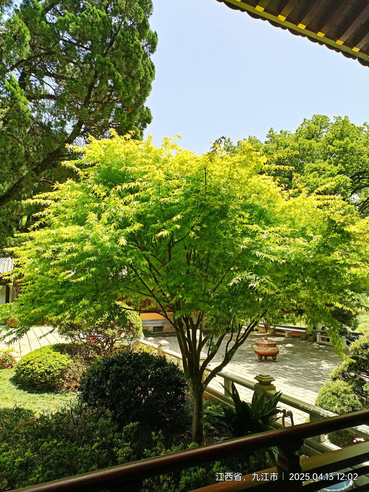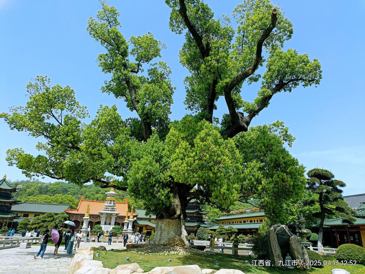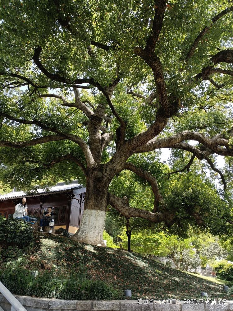 (图片:东林寺的古树,游人僧人都可在树下休闲)