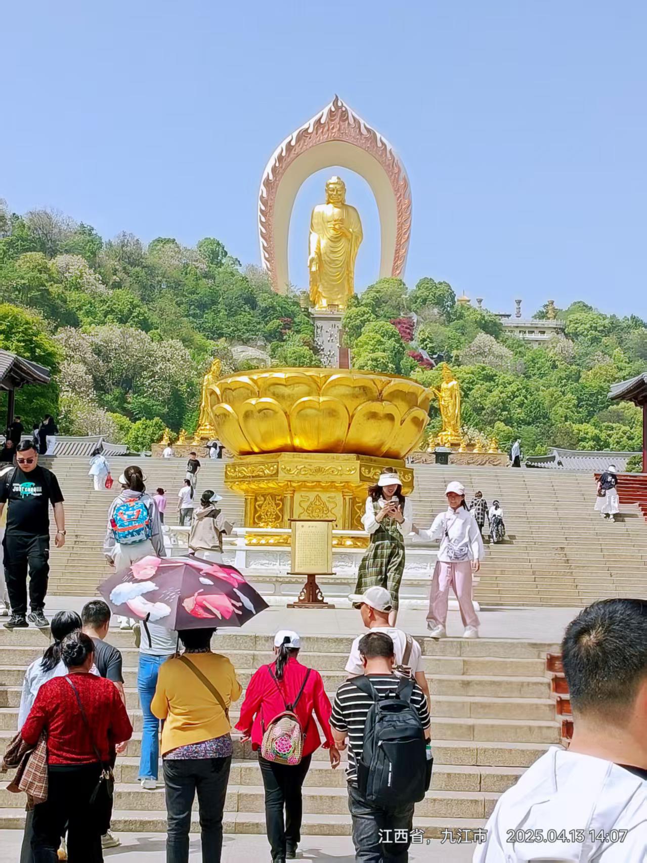 (图片:东林大佛。佛祖高高,台阶级级,拜者多多)
