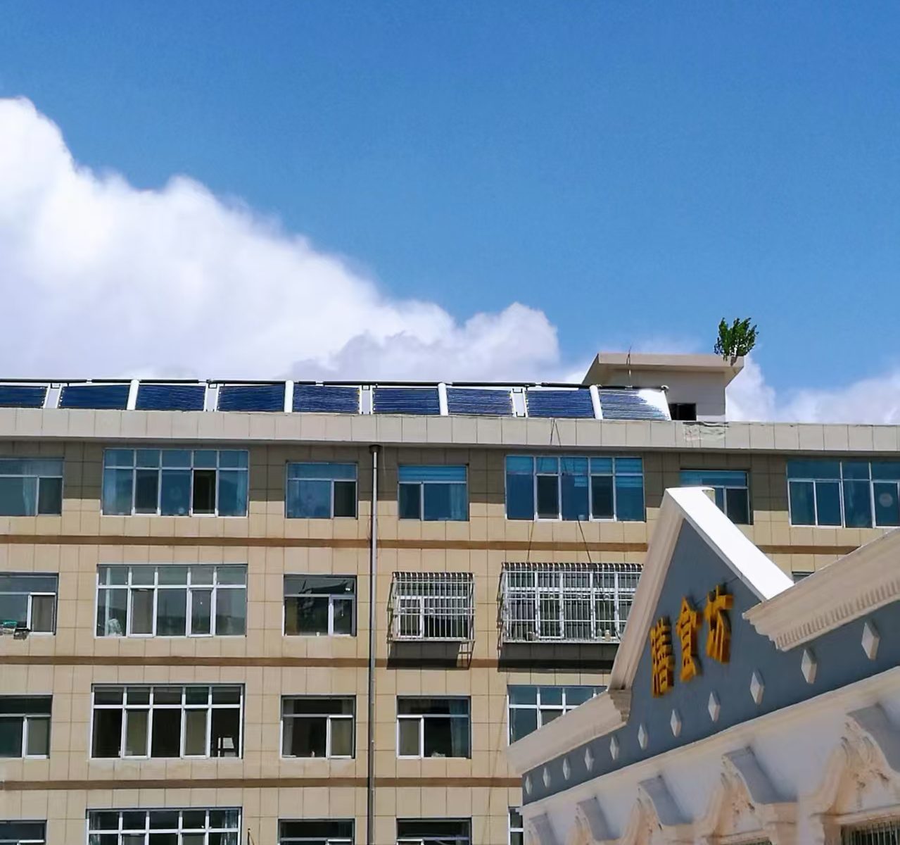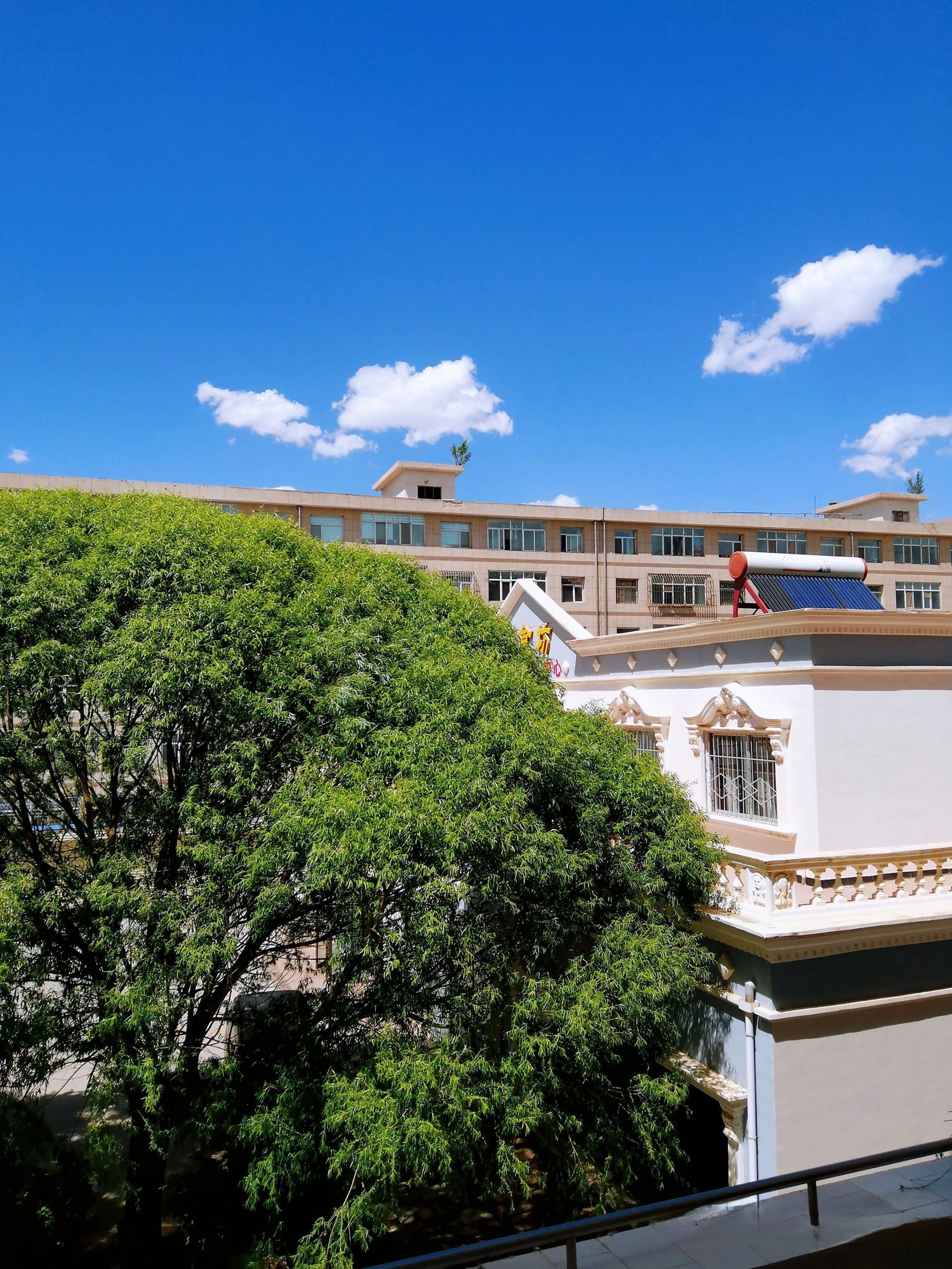 这篇文字在心里已酝酿多日了,起因是我家阴台对面邻家楼顶的一棵小树。我曾想以“像一棵树那样活着”为题,一吐为快。但随着年岁的增长,似已失去常说的创作的动力、或者叫做“冲动”的东西,脑子里总是空荡荡的。今天终于坐在了电脑前,也是因读前些日子在南阳买得的梁衡先生一本《万水千山行遍》的一篇文字而起,遂将题目改作如上。这几年,我常常透过我家厨房窗户的玻璃仰望凝视对面楼顶水房屋面上一棵小小的杨树,还不忘拍下它的照片。它不像那些扎根于在水草丰茂大地上的杨树那样挺拔伟岸,而似灌木多旁枝侧叶——也许是怕孤独吧。除了我,还有家妻,似乎再没人关注过它,更没人关心过它。如果是长在野地里一棵小草,说不定哪天也会有人洒一泡尿,加以滋养呢。此树如长在我家这幢楼的楼顶,我想我一定会爬上楼顶为它培土、施肥的。可惜不是。对面那座楼有六层之高,它就长在楼顶的一座水房的屋面的一角,无法确定它有多高,估算了一下,也就一米左右高吧。河西走廊风多,它可能是春天杨花败落后,被风吹到楼顶的一颗种子发芽后长成的。它为何选择这么恶劣的环境落脚,我猜不透。