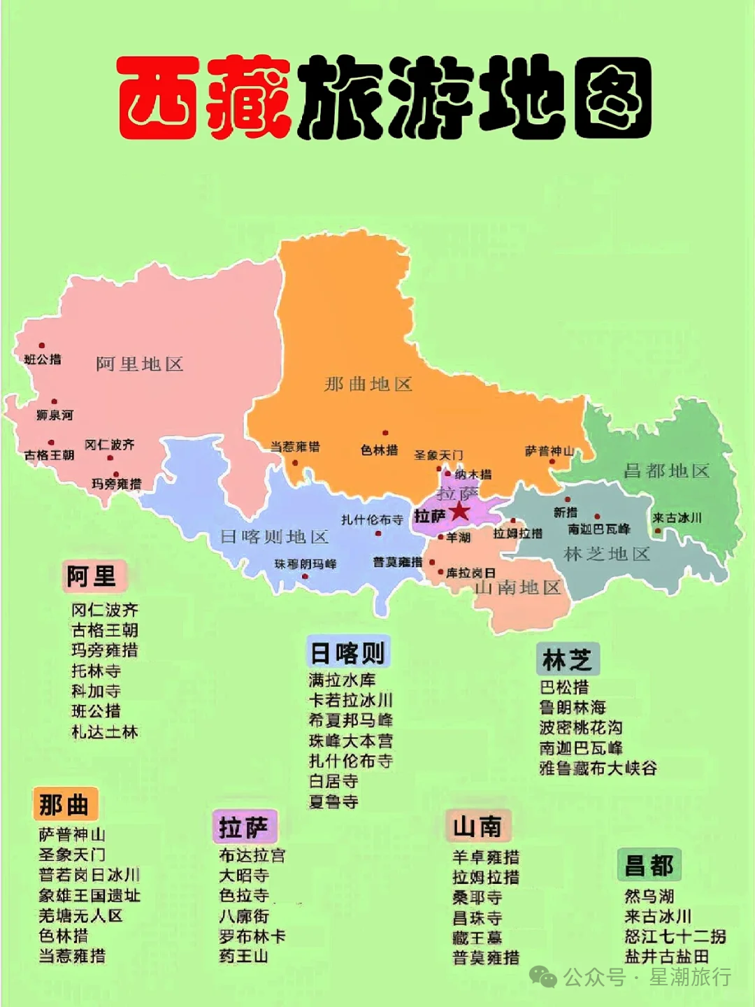 精华景点:布达拉宫、大昭寺、纳木错、珠穆朗玛峰、羊卓雍措、林芝桃花沟、拉萨八廓街、日喀则扎什伦布寺、昌都强巴林寺、山南雍布拉康。