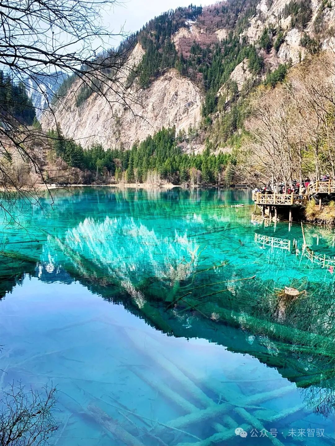 九寨沟的美,美在那一潭潭五彩斑斓的海子。碧蓝如洗的湖水中,倒映着层林尽染的山色,宛如上天打翻了调色盘。踏着木栈道,听松涛阵阵,看叠瀑飞泻,仿佛置身于童话世界。这里的水,清澈得能见底;这里的天,蓝得令人心醉。