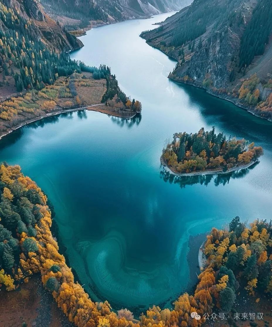 喀纳斯,仿佛是上帝遗落在人间的一块翡翠。湖水随季节变幻着神秘的颜色,春夏碧绿如玉,秋季蔚蓝如天。环湖的原始森林,秋日层林尽染,金黄、橙红、墨绿交织成一幅绝美画卷。观鱼亭上远眺,喀纳斯湖蜿蜒于群山之间,宛如一条蓝色飘带。图瓦人的木屋炊烟袅袅,仿佛世外桃源。