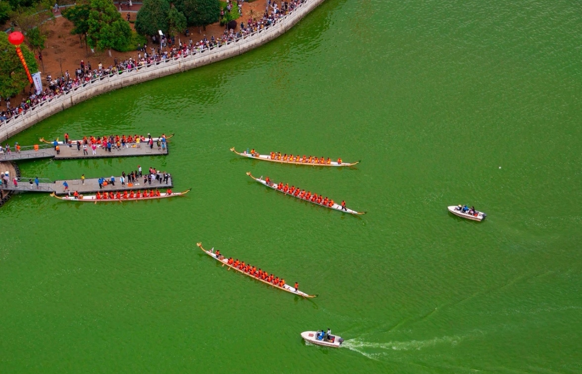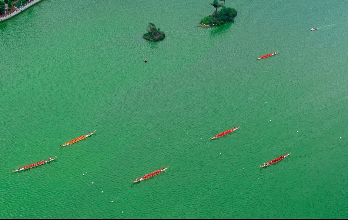 榕树下,总有人在那下棋、打牌。节日的时候,还能看到精彩的龙舟比赛。