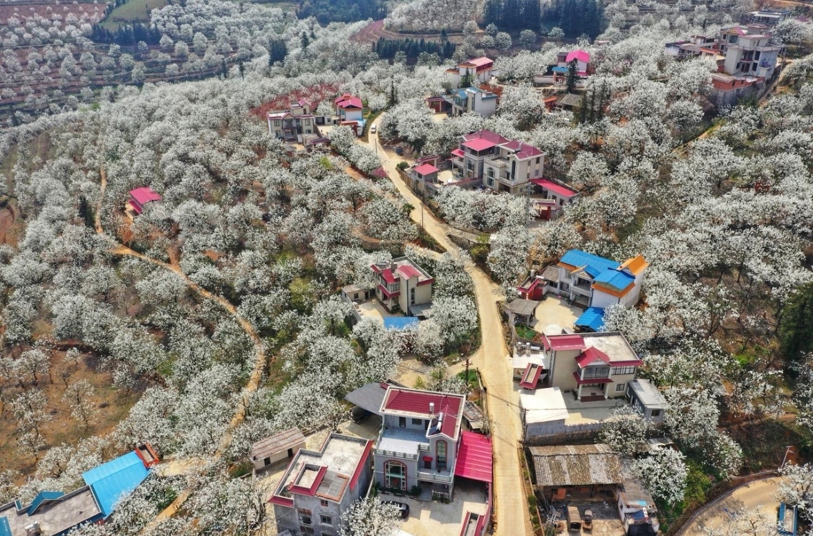 浓郁的花香从四面八方涌来,人仿佛被温柔包裹。一阵微风吹过,梨花纷纷飘落,有些花瓣还会落在肩头。