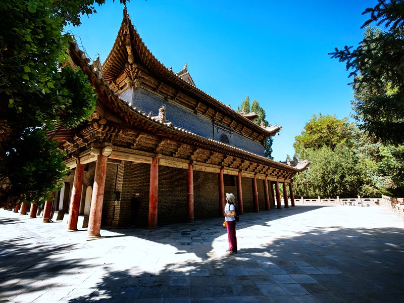 接下来在酒店休息了两天,抽空去参拜大佛寺。酒店离大佛寺很近,站在窗前就能看到佛寺里的白塔。上午八点左右,我和妹妹走进了大佛寺。大佛寺是张掖的一张名片,前来参拜礼佛的人络绎不绝,我们来的时候人不多,寺院里静悄悄。