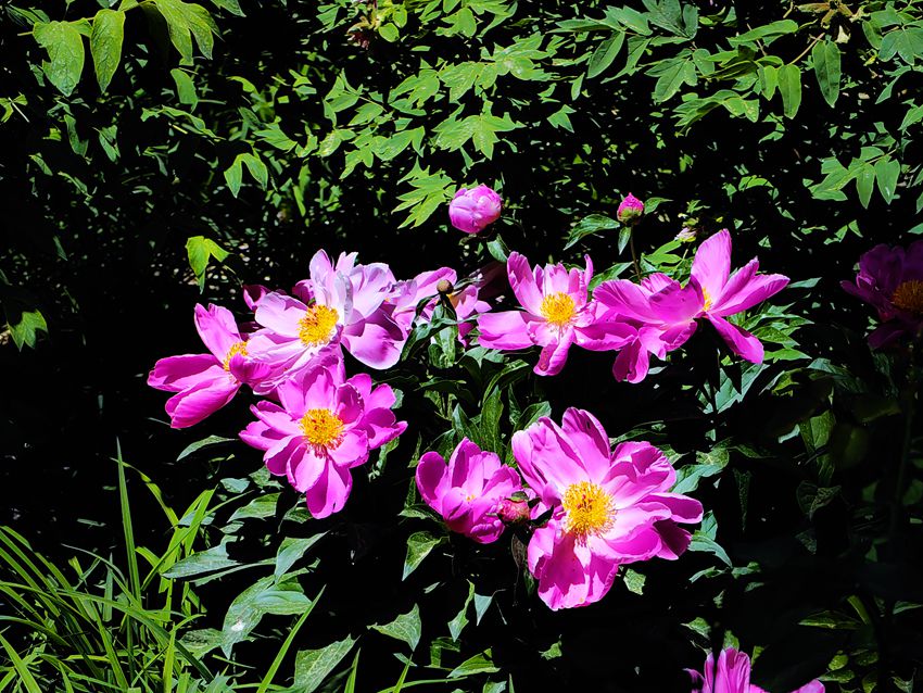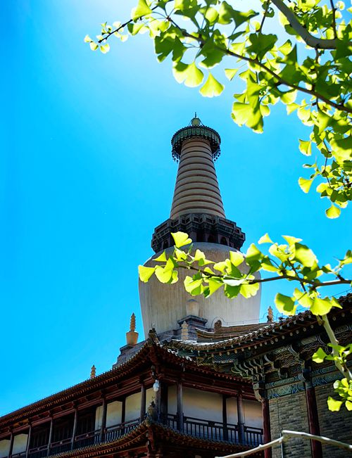 那座白塔高高耸立,在晨光中显得格外洁白。塔前开满了牡丹花,粉的、白的、紫的,在微风中轻轻摇曳。空气中飘着淡淡的花香,混合着寺院特有的檀香气息。几只蜜蜂在花丛中忙碌的穿梭,发出轻微的嗡嗡声。