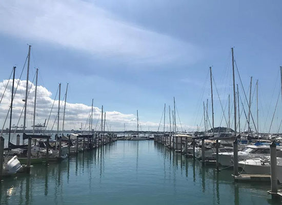 这里是新西兰最早的土著人——毛利人发源地,感受了毛利人的风土人情后回到奥克兰,车子经过怀特玛塔海港大桥后,来到了海港北岸“美国帆船杯”比赛村码头,岸边停靠着各式各样、千姿百态的游艇和帆船,清澈的海水倒印着船影,由于不是比赛季,海边空旷如野、海水平静如镜,一切显得那么悠闲和慵懒,真愿意在这晒晒太阳、发呆看天。据说南岛自然风光还要迷人,但行程中没有。