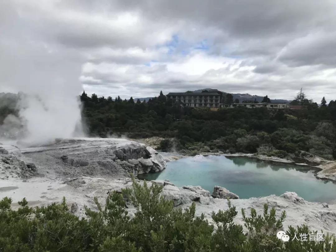 经过3个多小时的飞行,于晚上11点多抵达奥克兰,当晚就在机场附近的酒店入住,隔天驱车前往著名的罗托鲁瓦市地热公园。这里散布着大小不等形状各异的天然地热喷泉,以及喷泉周边因不同矿物质残留地表而形成的五彩水池,地热永不间断地喷射,时大时小、时高时低,蒸气笼罩着整个山地,并充塞着各种植物的间隙,犹如人间仙境。
