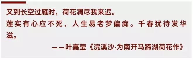 曾经考古人员从汉朝坟墓里挖出了一颗莲子,经过培养,莲子竟也发芽开花。这件事让叶嘉莹深受触动,于是写下这首词: