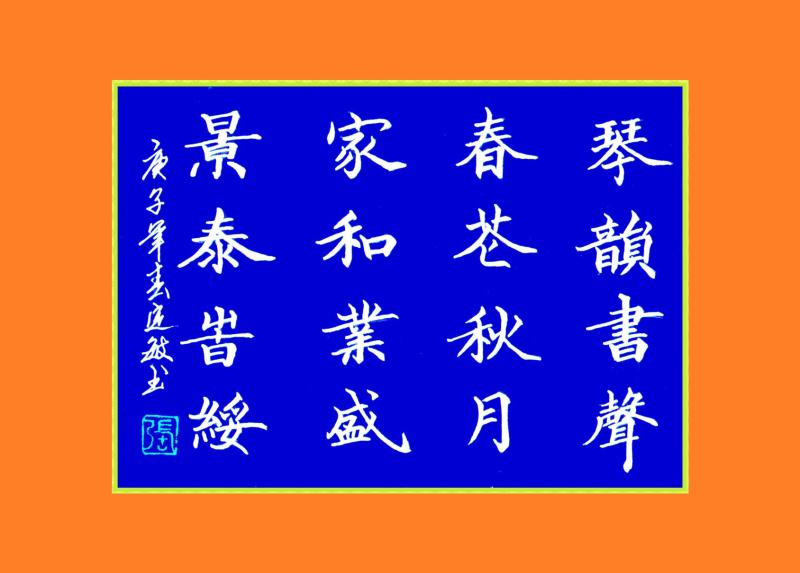 “琴韵书声,春花秋月。家和业盛,景泰时绥”