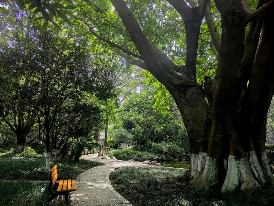 透过阳台上大大小小的十几盆油亮植物,我放眼望去,楼下花园里那些树龄超过五十年甚至上百年的巨大的黄果树、银杏和榕树,在这初夏的晨光中,正精神抖擞闪闪发光……