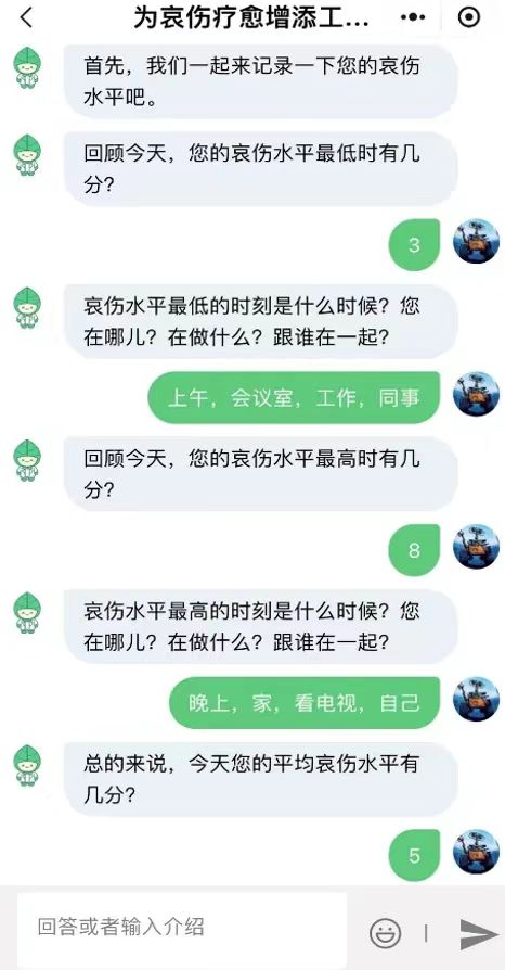 比如上午在会议室和同事开会,哀伤是3分,晚上一个人在家看电视,哀伤是8分。