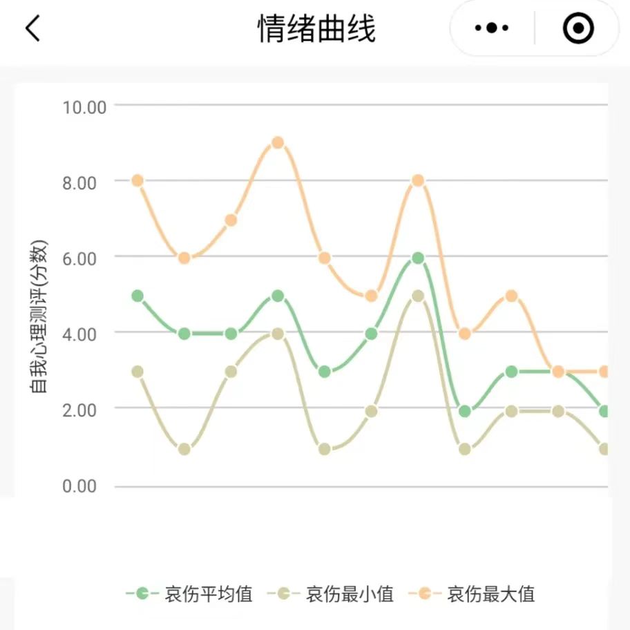 我们开发的哀伤疗愈小程序中有哀伤情绪曲线 功能,可以用0-10分对自己每天的哀伤最高点、最低点、平均情况进行评分。